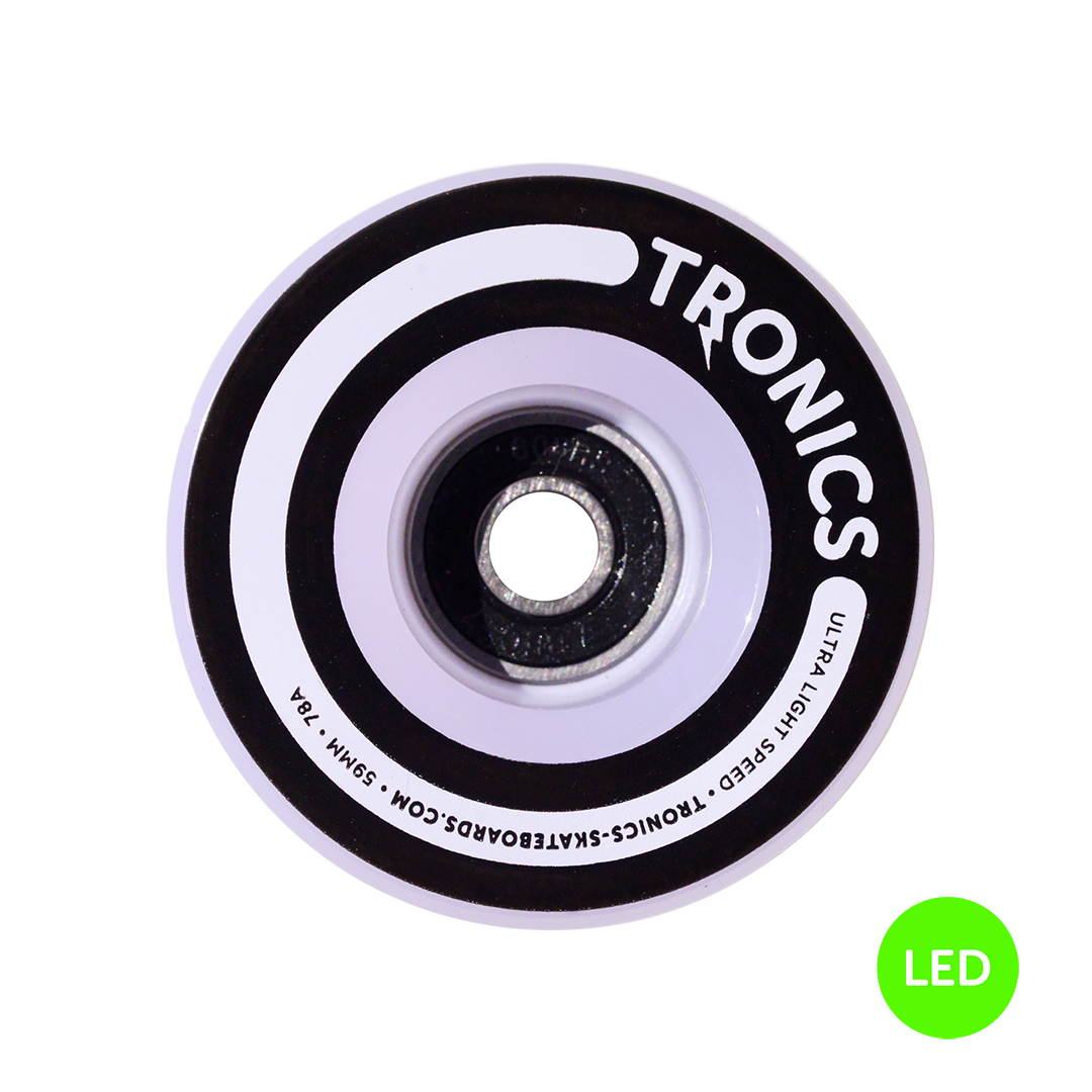 A set of 4 Premium 59×38 mm TRONICS LED wheels made of polyurethane with a durometer of 78A. The 4 LED wheels will illuminate when you ride your board. Ignite your ride!